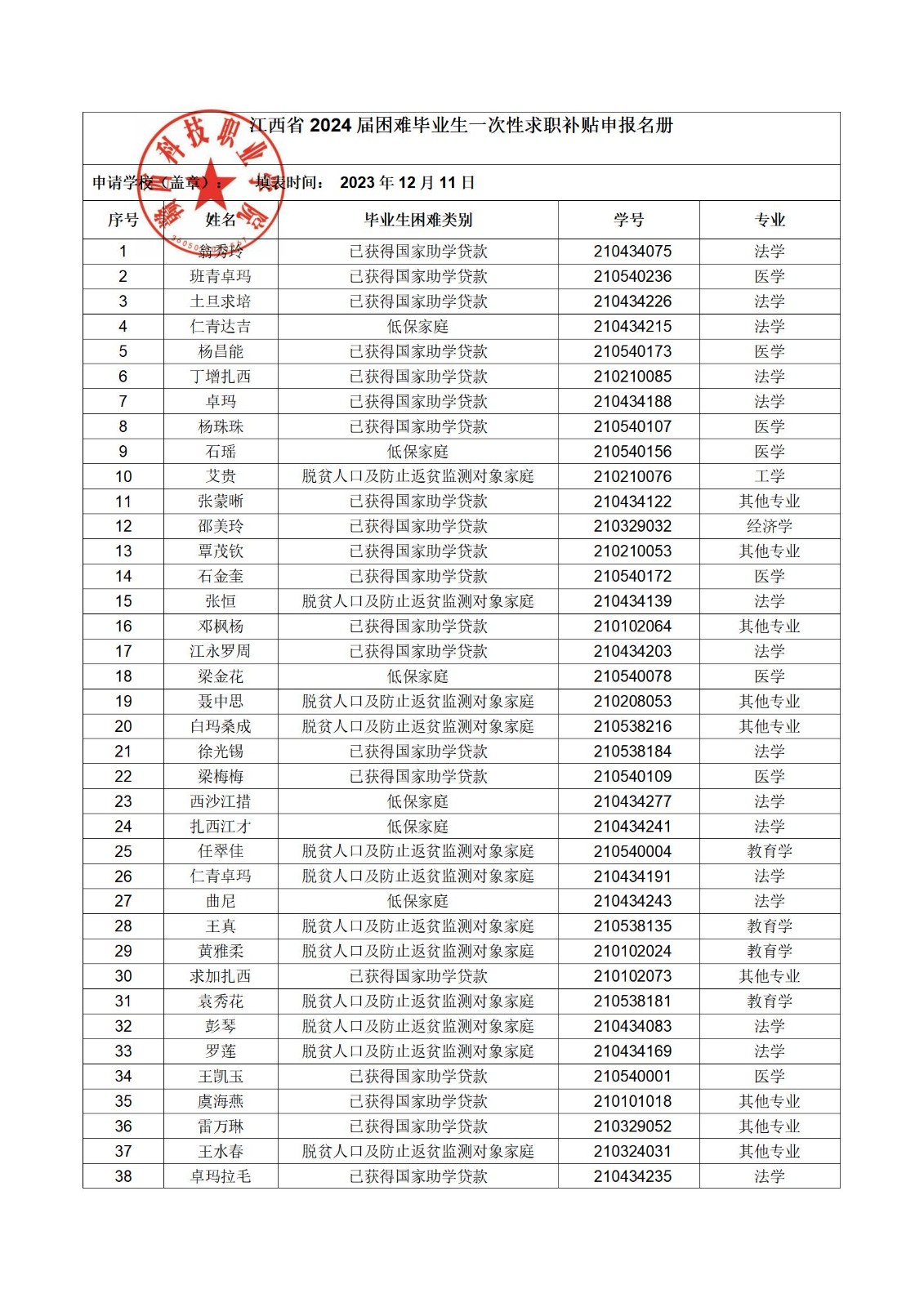 赣西科技职业学院2024届毕业生一次性求职补贴 初审(校级)公示(第三批)