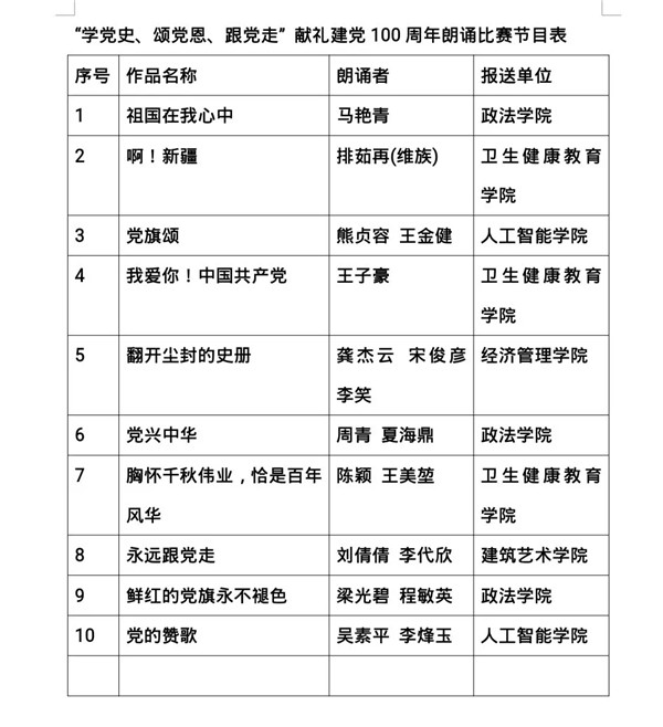 为庆祝中国共产党建党 100 周年,激发全院学生以饱满的热情歌颂祖国、歌颂党、充分展现新形势下赣西学子昂扬向上、蓬勃奋发的精神风貌。按照省委教育工委关于党史学习教育的有关工作部署精神,进一步引导全院师生增强爱党爱国情怀,做到学史明理、学史增信、学史崇德、学史力行;学党史、悟思想、办实事、开新局。不断提高政治判断力、政治领悟力、政治执行力。围绕立德树人根本任务,用红色资源讲述党的百年奋斗历程。