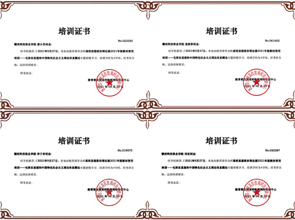 全体思政课教师在全国高校教师网络培训中心网站收看了》《思想道德与法治 》课程培训视频。并按要求完成培训作业后,通过考核获得了培训结业证书。