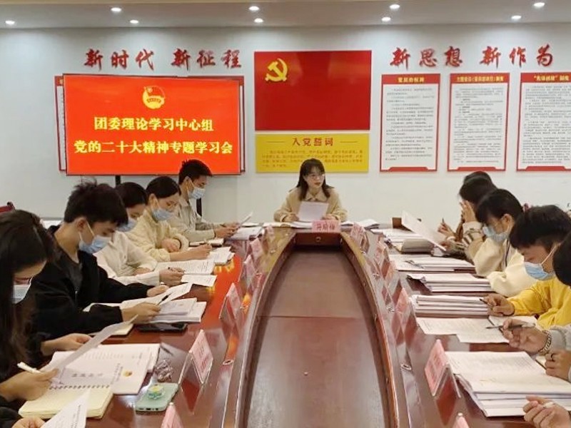 为深入学习贯彻党的二十大的精神,推动党的二十大精神入脑入心、见行见效,10月28号下午,我校团委理论学习中心组深入开展“学习党的二十大精神”专题学习研讨会,全面部署团委学习宣传贯彻落实党的二十大精神各项工作。团委书记、各二级学院团总支书记、副书记、校学生会负责人、团委下属五个中心及各社团负责人参加会议,团委书记符瑜梅主持专题学习会并讲话。