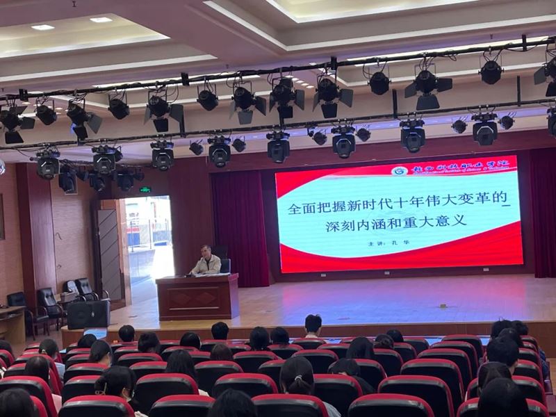 孔华校长以“全面把握新时代十年伟大变革的深刻内涵和重大意义”为题,向同学们讲解了党的二十大报告主要精髓和核心要义。