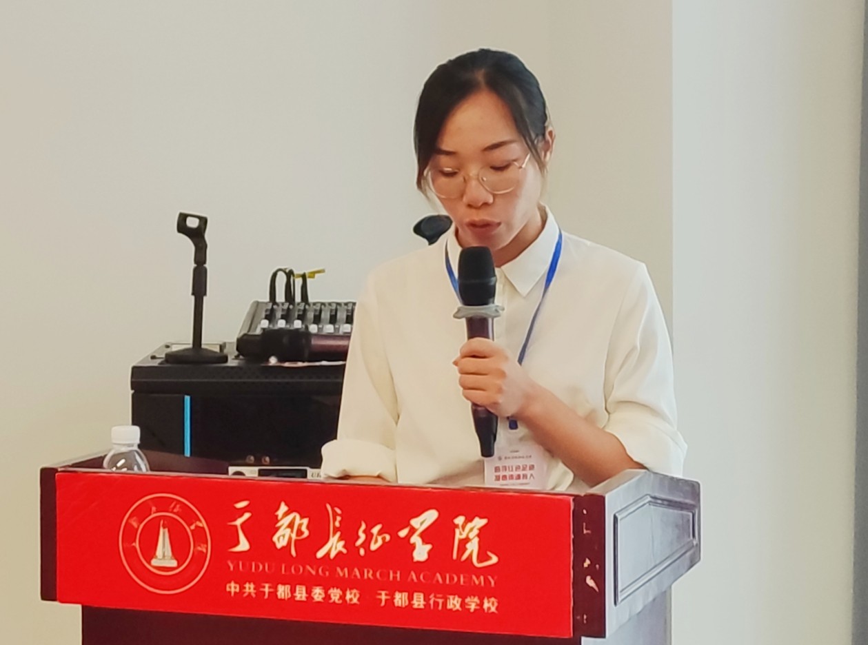 从纪念碑下走,便是东门渡口。全国人大代表、于都中央红军长征集结出发历史博物馆纪念园管理办主任钟敏以《弘扬四铁精神走好新时代长征路》为主题,向大家详细讲解了于都人民如何发扬“四铁精神”(铁一般的信仰、铁一般的信念、铁一般的纪律、铁一般的担当),为红军战略大转移贡献力量。