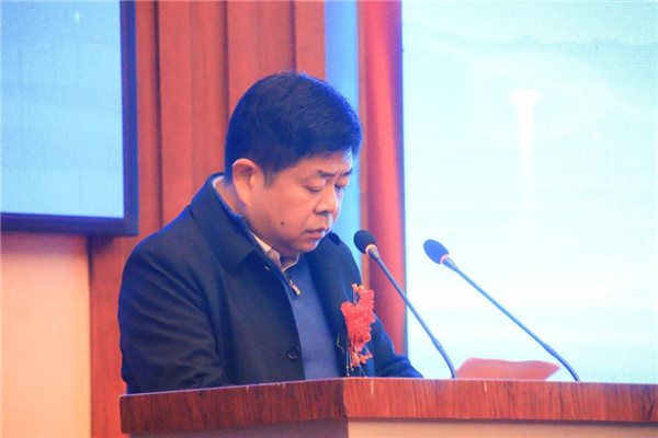 江西省应急管理厅党委委员副厅长徐何明宣布共同体成立,与会领导共同按动启动柱。