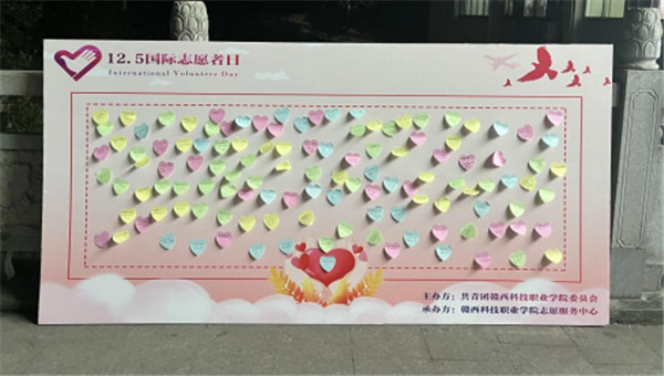 2023年12月5日是第38个国际志愿者日,为深入学习贯彻习近平新时代中国特色社会主义思想,弘扬“奉献、友爱、互助、进步”的志愿精神,凝聚志愿服务力量,展现青年志愿者风采。赣西科技职业学院志愿者服务中心组织开展“12·5”国际志愿者日主题系列活动,进一步营造浓厚的校园志愿服务氛围。
