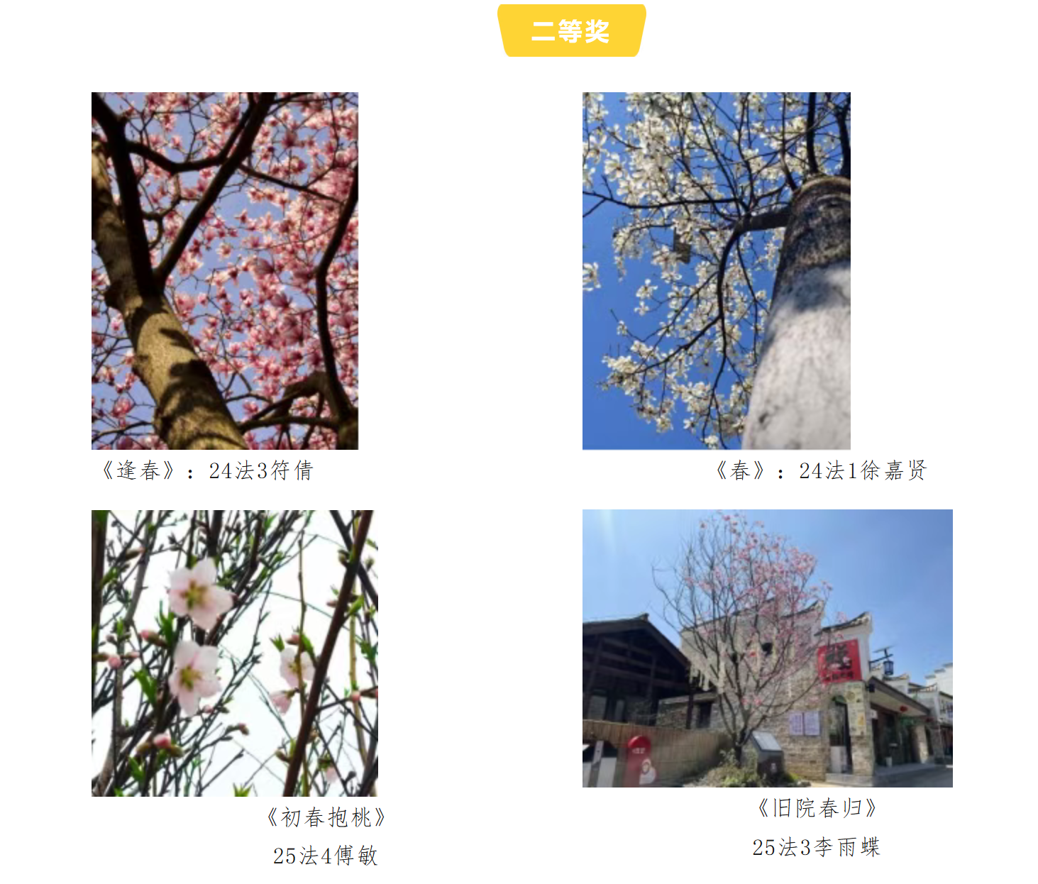 经过层层筛选与集中评议,最终评选出一等奖、二等奖、三等奖若干名,优秀作品兼具艺术性与感染力,生动诠释了春日独有的浪漫与活力。